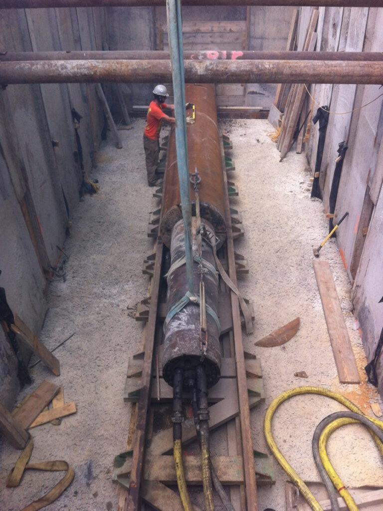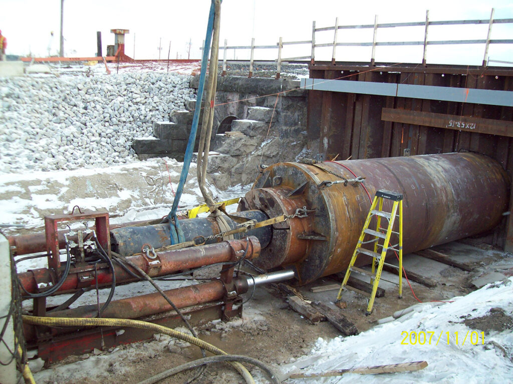 Pipe Ramming is a great solution for the toughest Type 3, Type 4 soils and cobble filled grounds. Earth Boring boasts the greatest number of successful on grade drives. Owners, engineers and contractors rest assured that the high impact of pipe hammering is well at hand with Earth Boring forces. We have delivered many high profile pipe ram projects under railways and water courses in southern Ontario and the GTA. The sheer volume of ramming work has enabled us to entrench pioneering approaches into standard operating procedure. With ownership of the first large diameter ramming tool in Ontario, Earth Boring has driven home larger diameter casing, on grade than any of our competitors.
